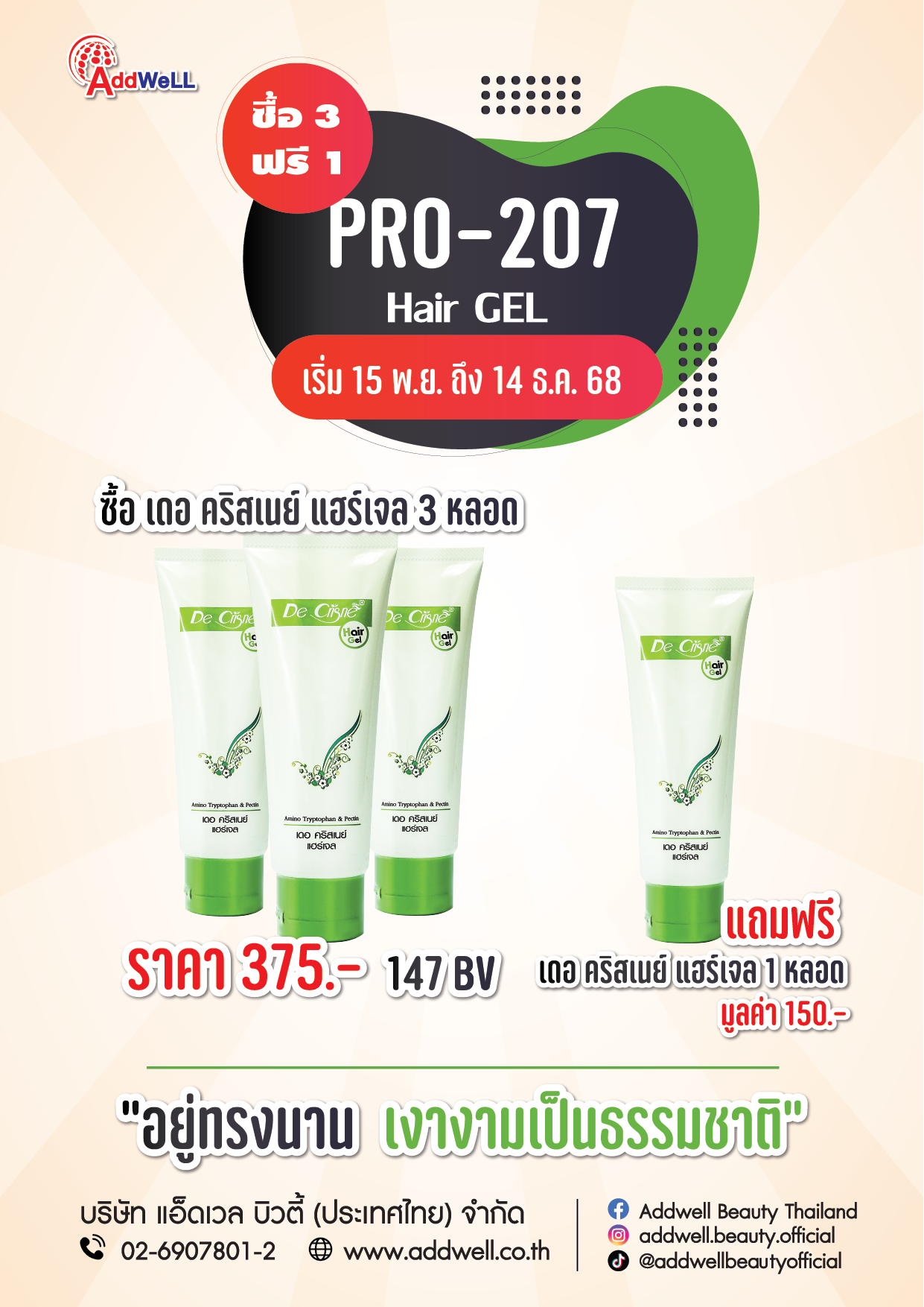 โปร Pro207 โปรโมชั่นแฮร์เจล 3 แถม 1