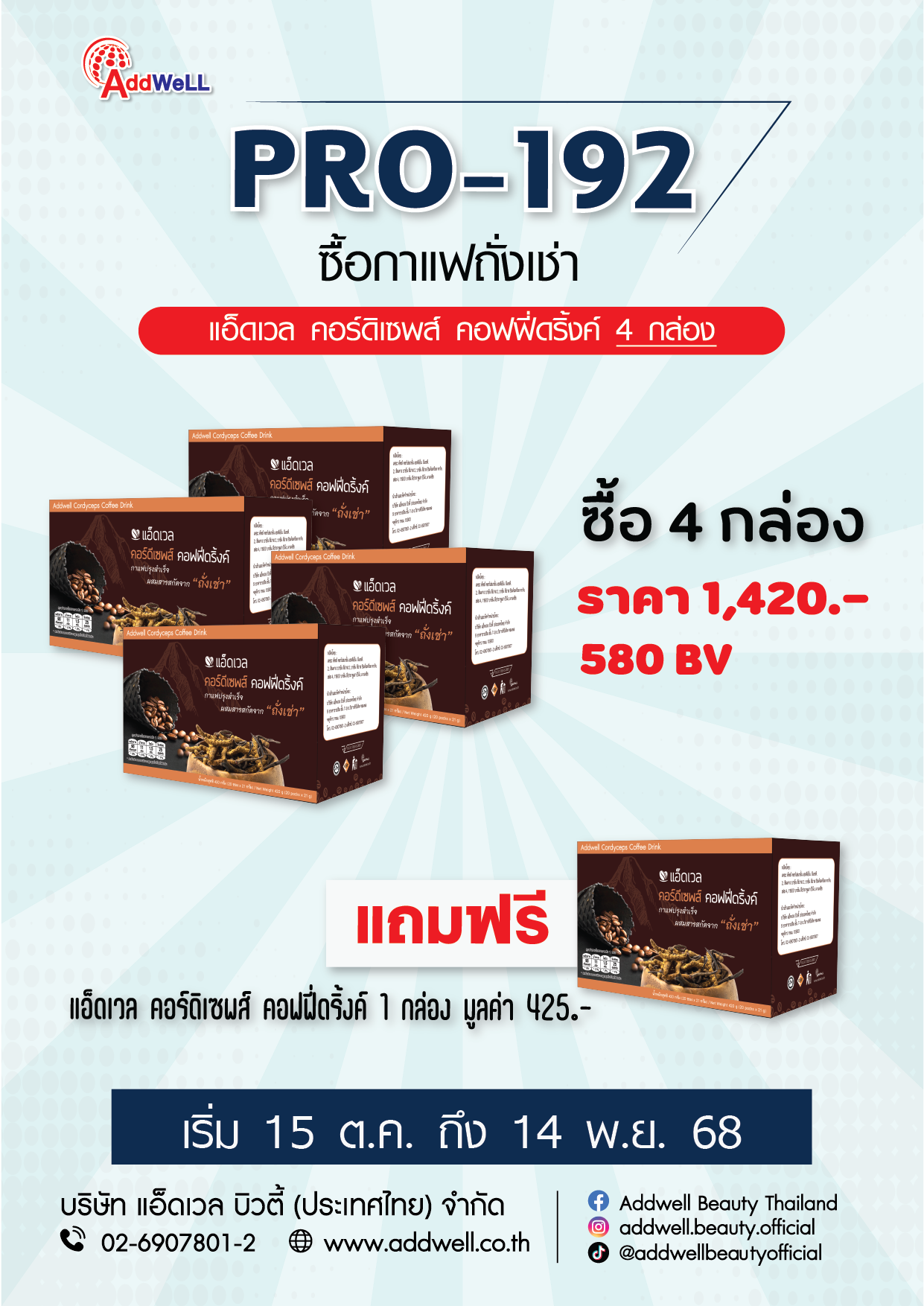 โปร Pro192 โปรโมชั่นกาแฟถั่งเช่า4แถม1